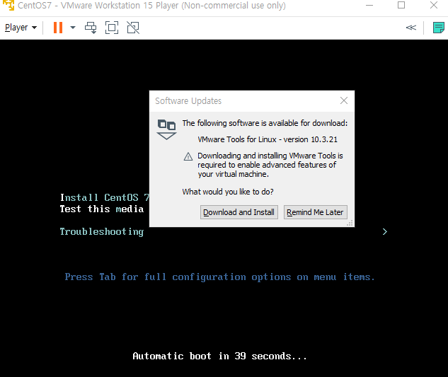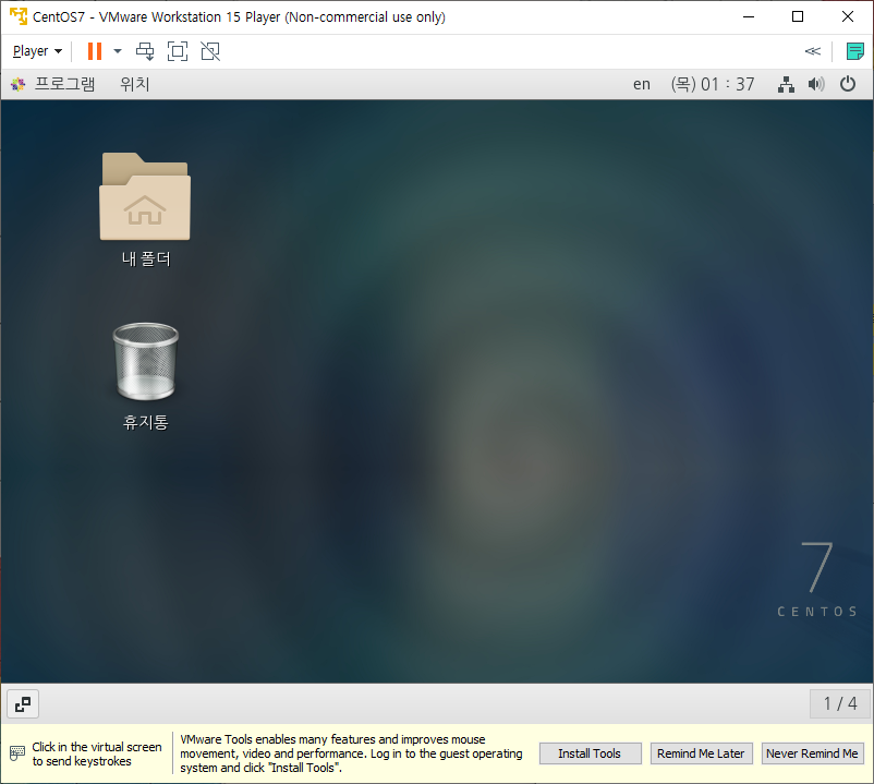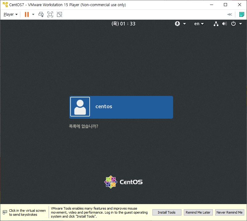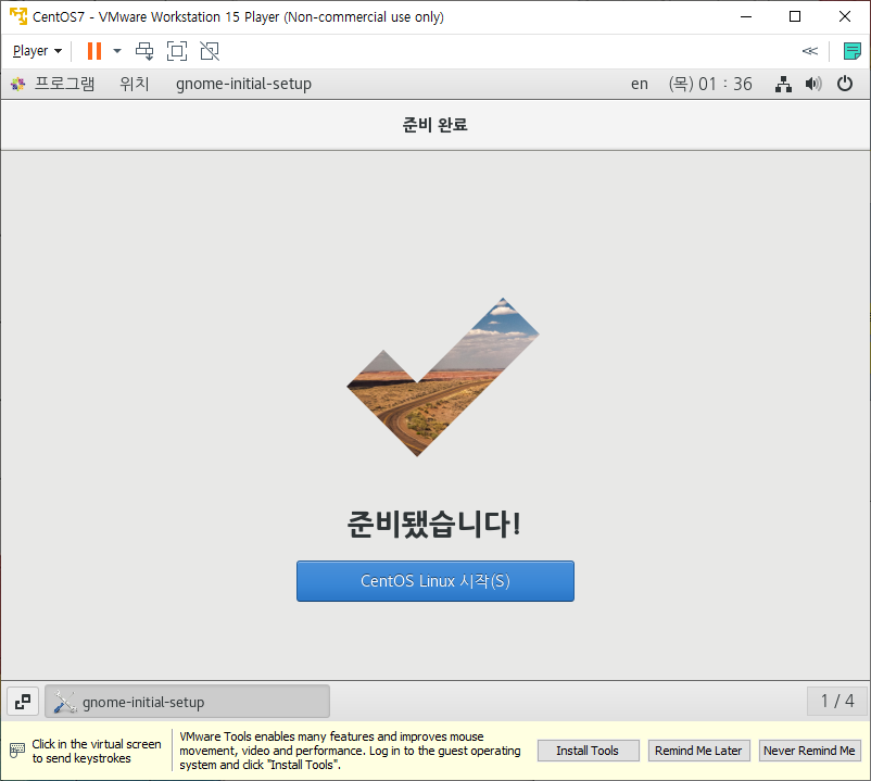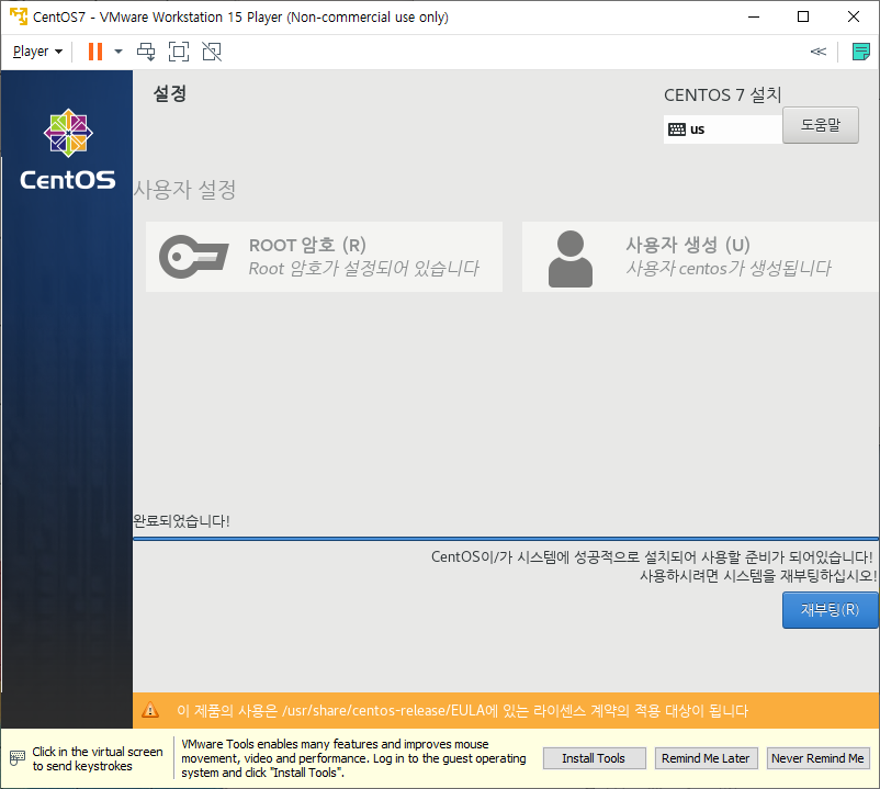 물론 VMware 안의 가상머신을 재부팅 하는 것이니 부담갖지말고 재부팅한다.