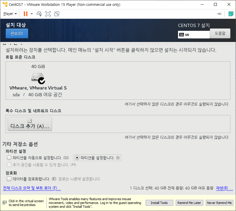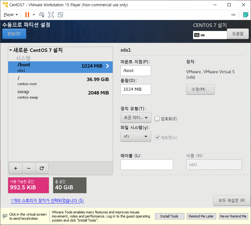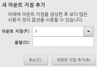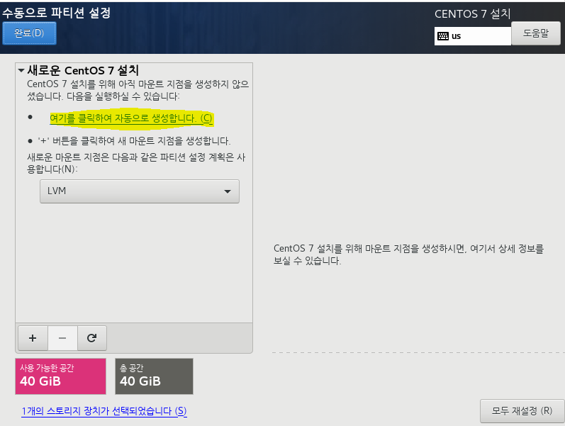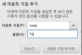 완료를 누르면 수동으로 파티션 설정하는 창이 나온다.