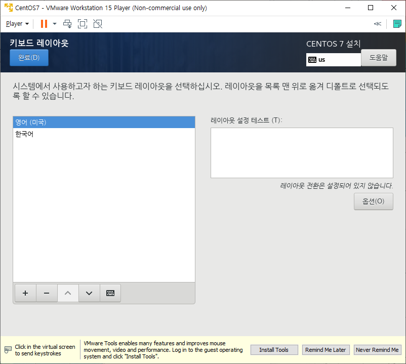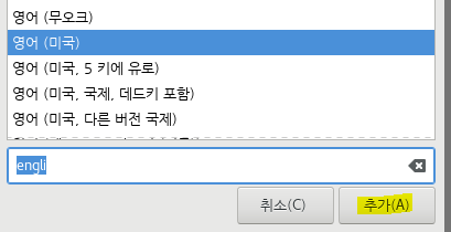 처음 들어가면 한국어만 덩그러니 있는데 +를 눌러 영어(미국)을 추가해주고
