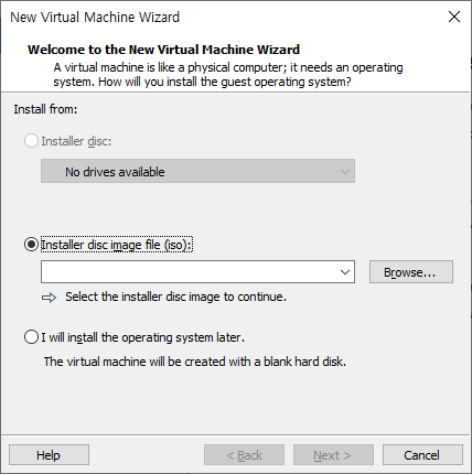 VMware가 켜지면 맨 위에 Create a New Virtual Machine을 누른다