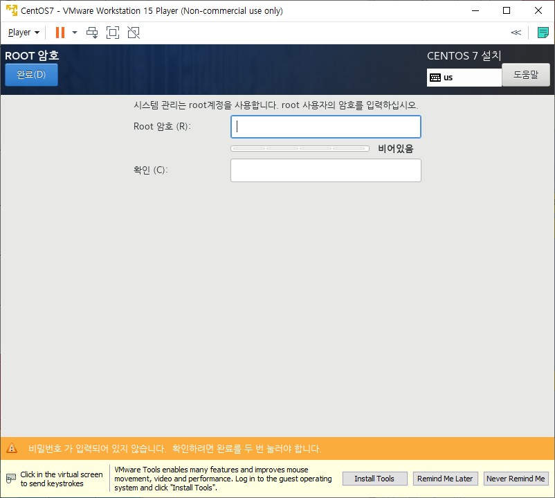 리눅스는 서버이기 때문에 최상위 사용자를 만들어줘야하는데 최상위 사용자 root의 암호가 지금 설정하는 암호이다.
