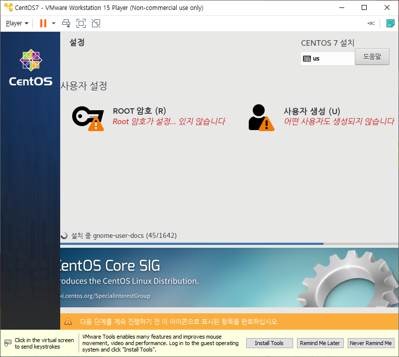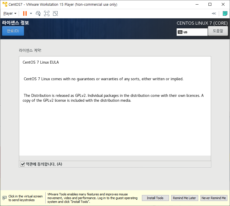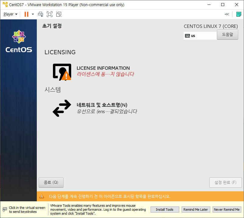 성공적으로 VMware에 CentOS7을 설치했다 .
