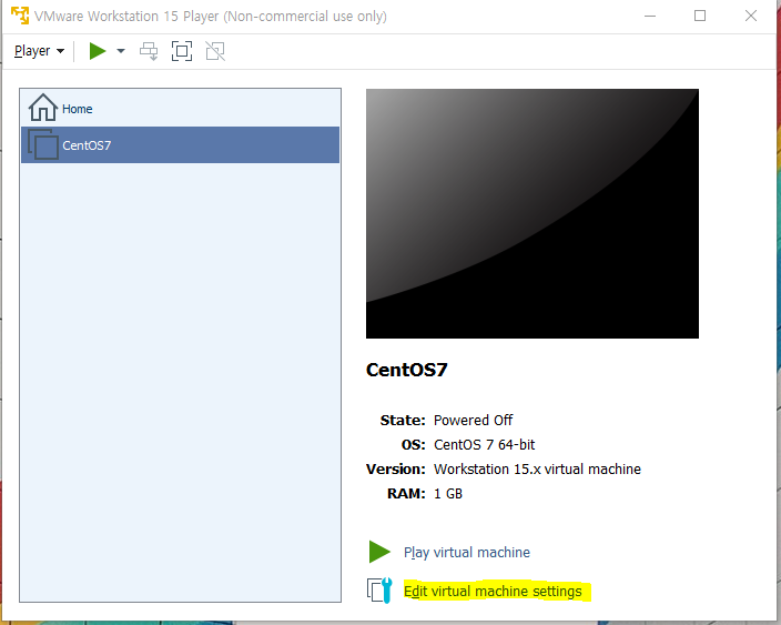 간단한 세팅을 위해 Edit virtual machine settings 클릭