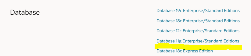 Database탭에서 Database 11g Enterprise/Standard Editions를 클릭합니다.