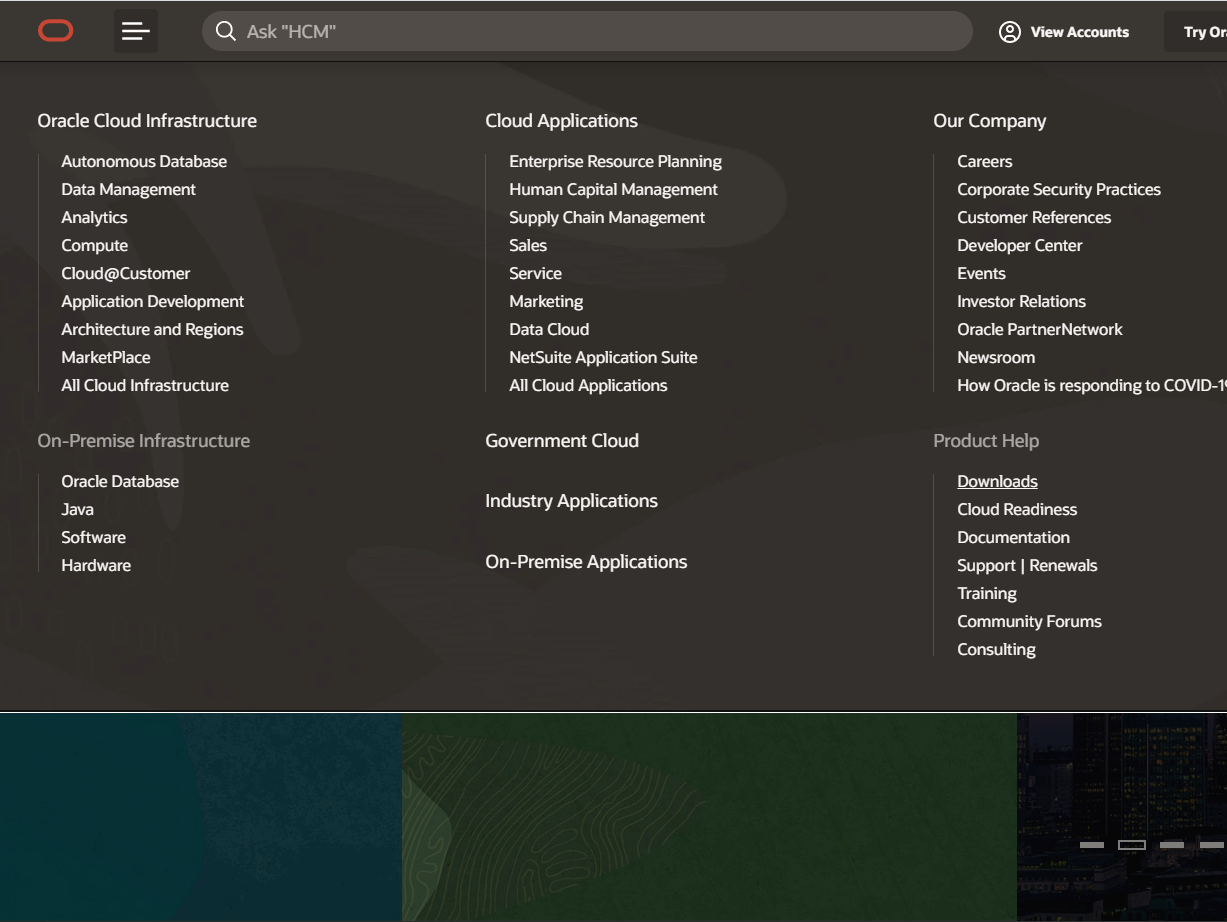 오라클 홈페이지(https://www.oracle.com/)에 접속합니다.