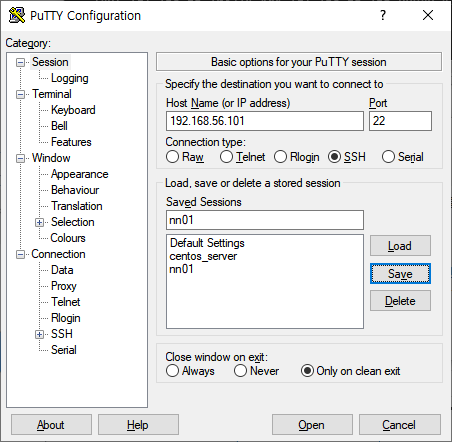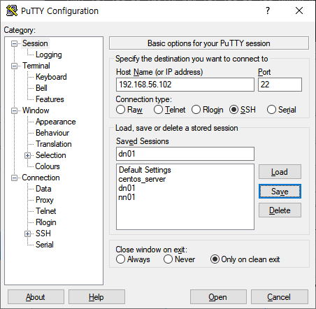 PuTTY로 3개의 가상머신을 전부 연결한다