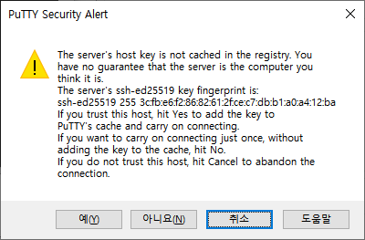 그후 다시 PuTTY에서 접속
