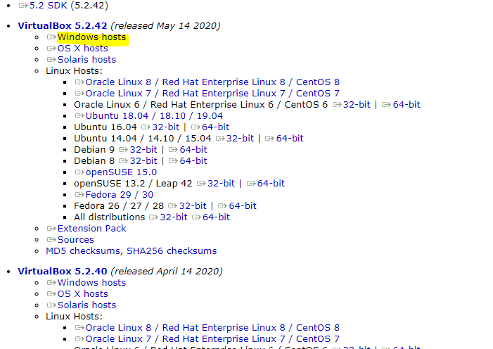 VirtualBox 5.2버전 다운로드