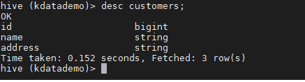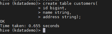 > create table emp(name string);