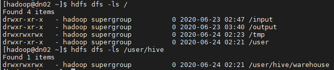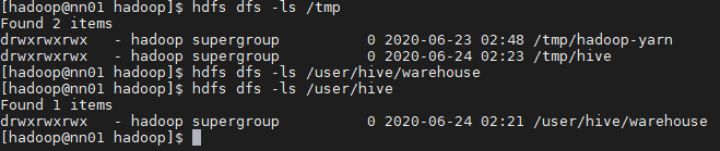 [hadoop@dn01 ~]# hdfs dfs -mkdir -p /user/hive/warehouse