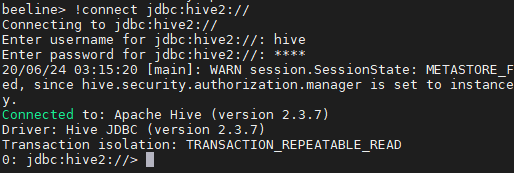 > !connect jdbc:hive2://
