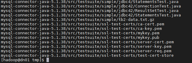 [hadoop@dn01 tmp]# tar xzvf mysql-connector-java-5.1.38.tar.gz
