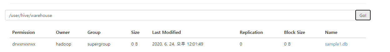 에 들어가 /user/hive/warehouse를 확인하면