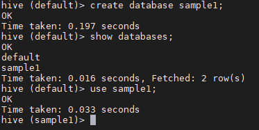 > create database sample1;
