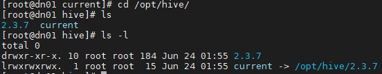 # ln -s /opt/hive/2.3.7 /opt/hive/current