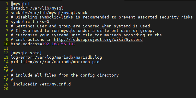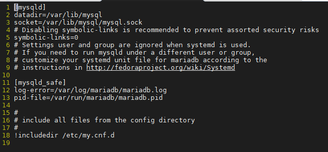 # vi /etc/my.cnf