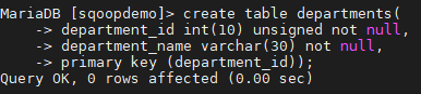 create table departments(