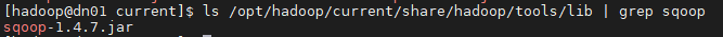 # cp sqoop-1.4.7.jar /opt/hadoop/current/share/hadoop/tools/lib/