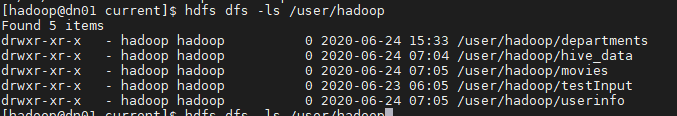 # hdfs dfs -ls /user/hadoop