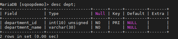 > create table dept like departments;