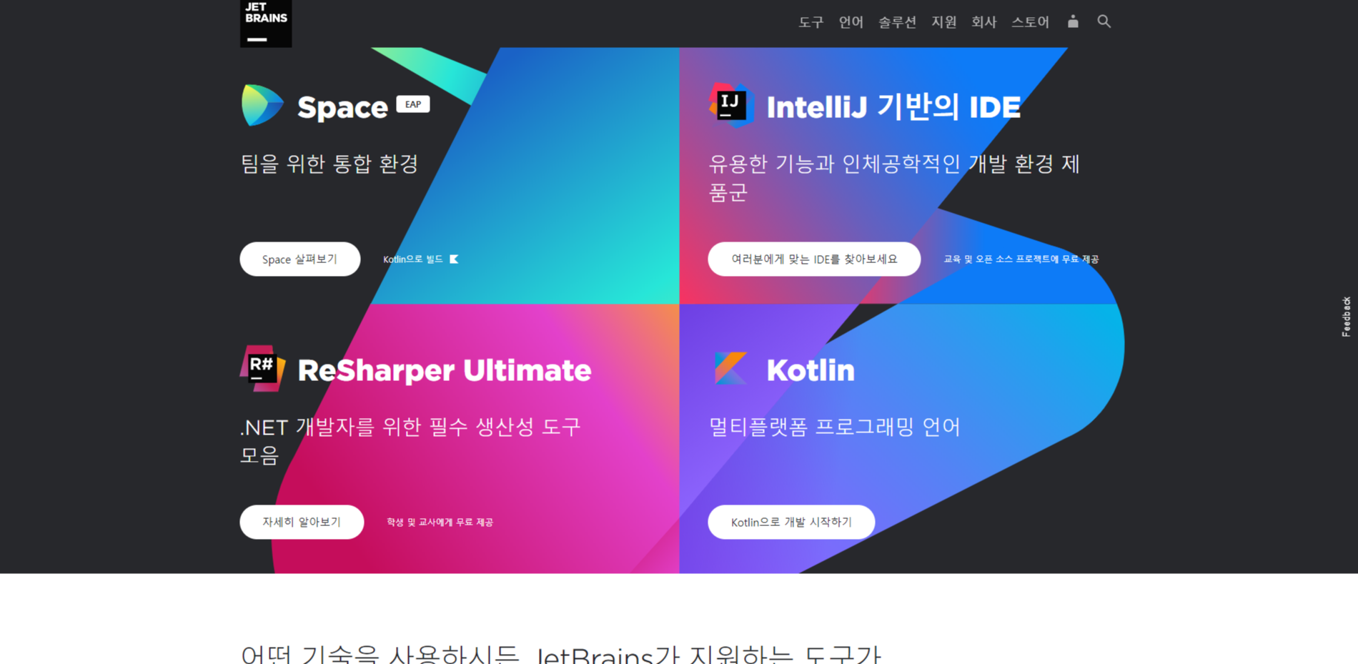 먼저 젯브레인스 홈페이지(https://www.jetbrains.com/ko-kr/)에 들어간다.