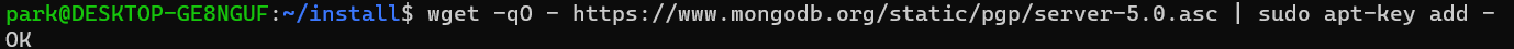 $ wget -qO - https://www.mongodb.org/static/pgp/server-5.0.asc | sudo apt-key add -