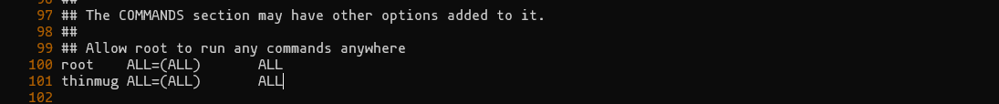 thinmug 계정을 sudo 허용해놓은 상태 추가 설정