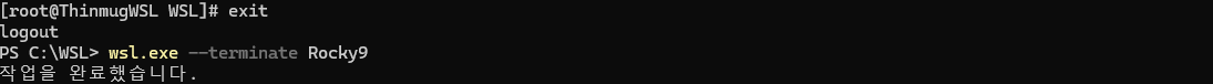 vi /etc/wsl.conf로wsl.conf파일을 열고 다음과 같이 입력한다.[network] hostname = ThinmugWSL [boot] systemd = true:wq로 파일을 저장하고 exit 명령어로 shell에서 나와 wsl.exe --terminate <배포판명> 으로 WSL을 재실행한다.