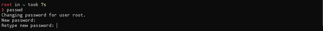 passwd명령어를 통해 root계정의 패스워드를 설정한다. 절대 잊지 않도록 한다.