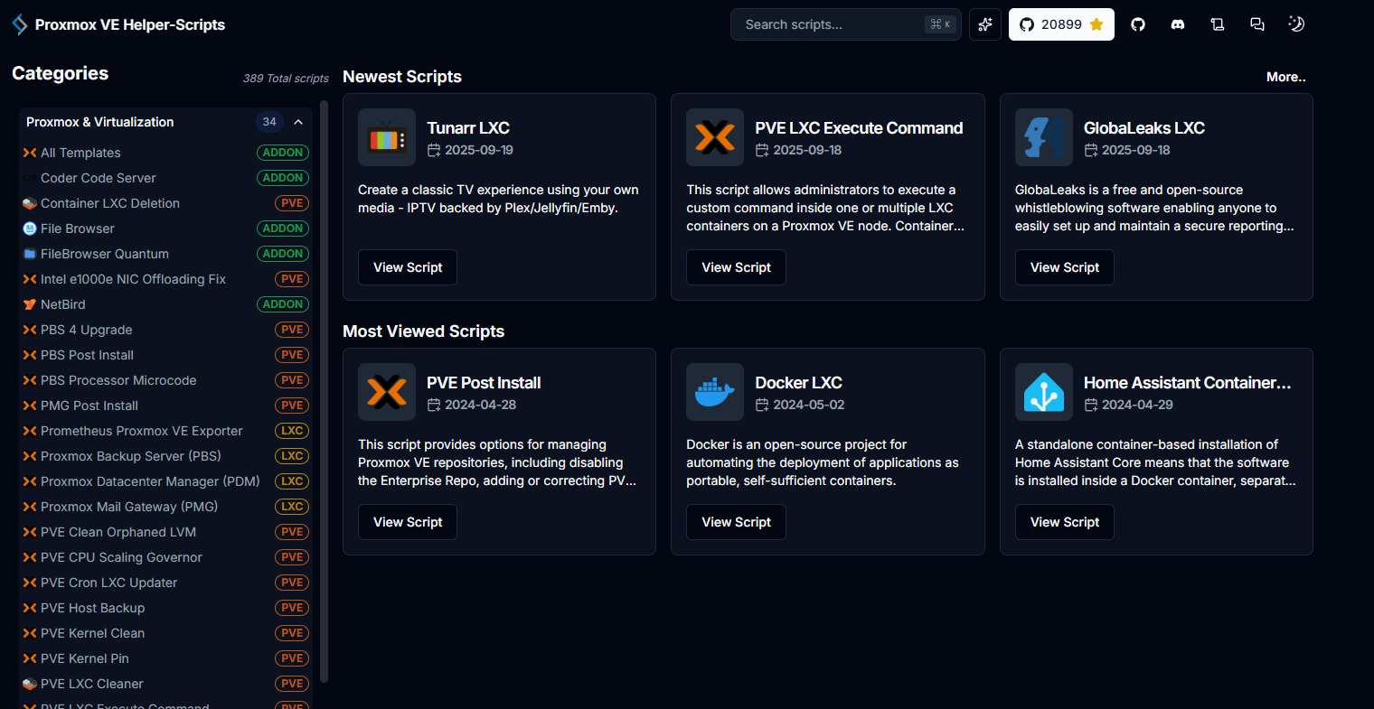 https://community-scripts.github.io/ProxmoxVE/scripts에는 Proxmox를 위한 다양한 스크립트들이 관리되고 있다.